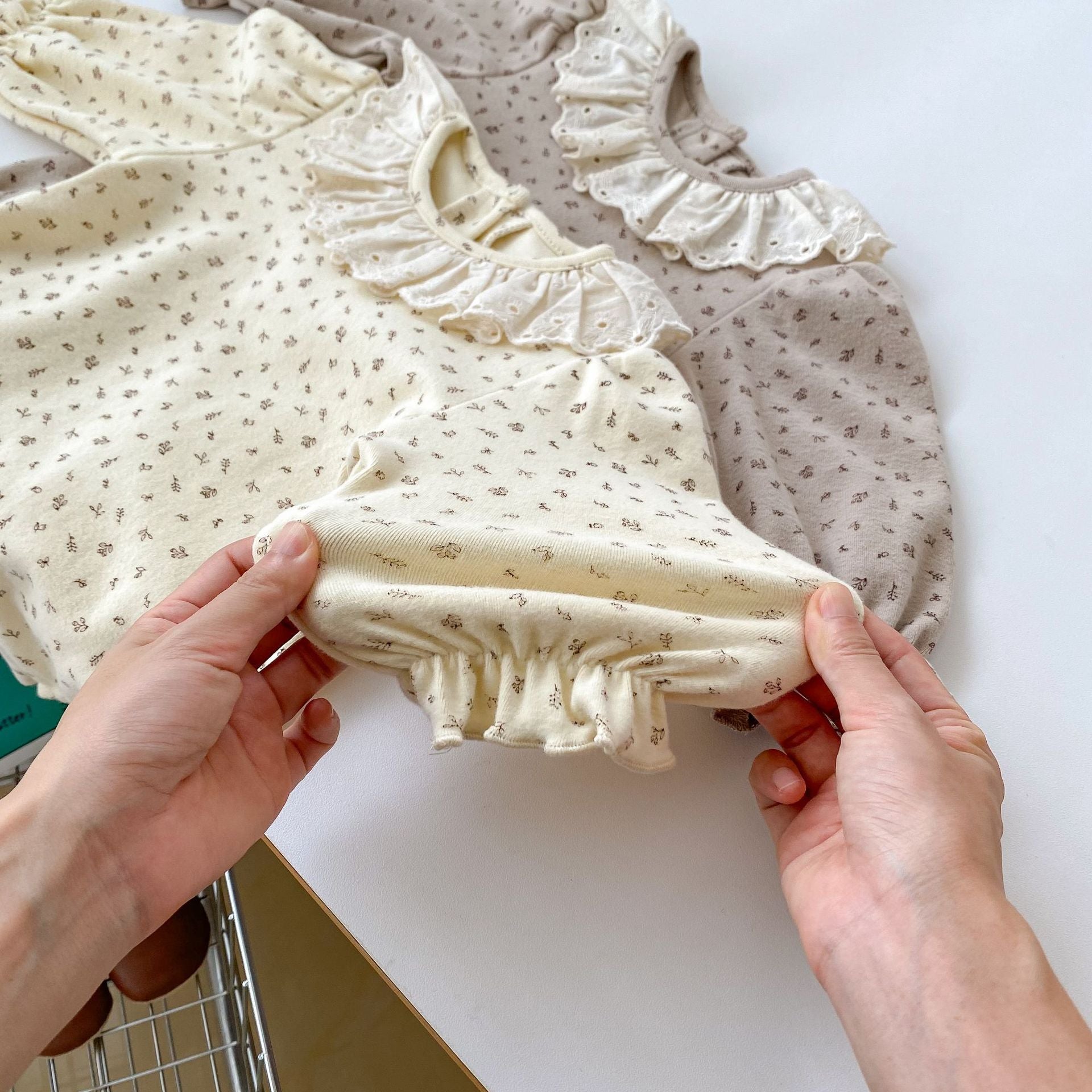 Arrival Baby Girls Long Sleeves Flowers Print Ruffle Collar Onesies